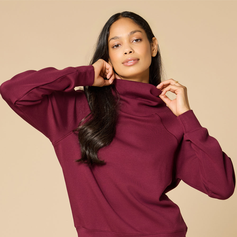DreamTech Cowl Neck with Pleat Pant - Cherry Cola