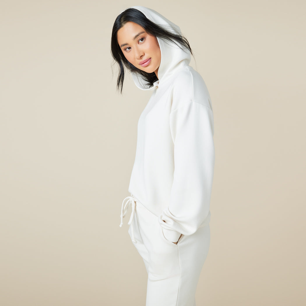 - Throw on the cozy, oversized hoodie with sleek side pockets to start, or end, the day.